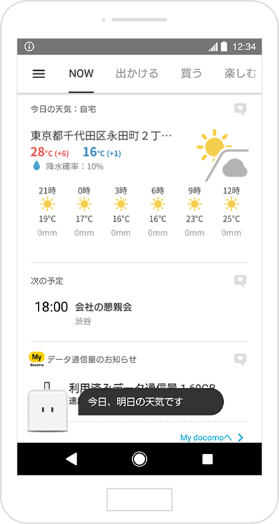出発時間に合わせて天気や電車の遅延を知らせたり、